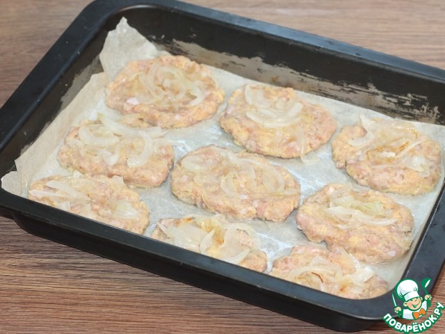 12. На котлеты распределяем жаренный лук.