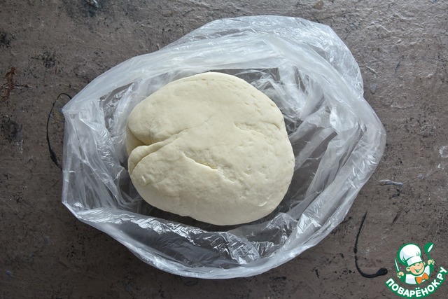 Тесто округляю, перекладываю в полиэтиленовый пакет и оставляю его отдохнуть.