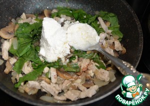 Добавляем сливки, перемешиваем, тушим 2 минуты.