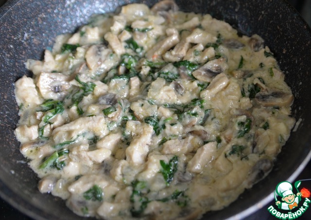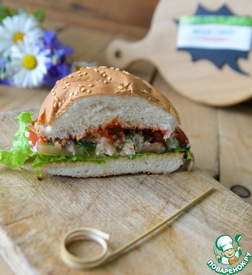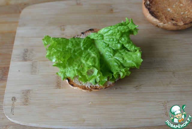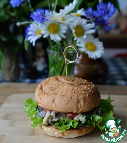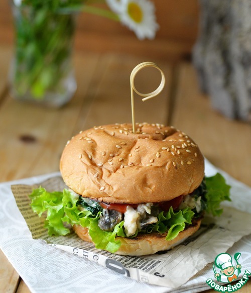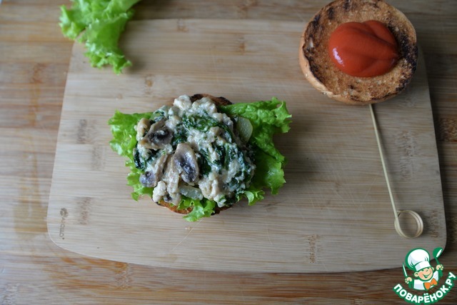 Рецепт «Бургер с индейкой, шпинатом и шампиньонами»: