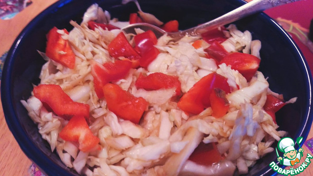 Салат готов. Так как внешне он выглядит, честно говоря, не очень презентабельно, то постараться красиво его выложить в салатник и чем-нибудь чуть-чуть приукрасить. Например, перцем чили - он не прибавит калорий, а острота будет там в "тему"