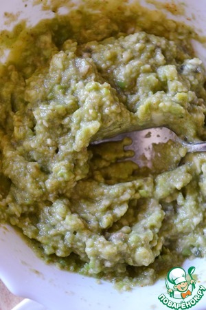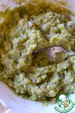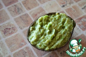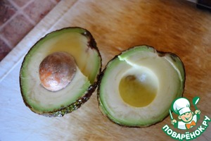 • Выложить соус в половинки авокадо.