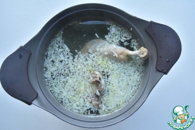 На заключительном этапе варки бульона добавила мелко нарезанный лук. К концу приготовления блюда он растворится в бульоне отдав ему вкус и аромат. -
