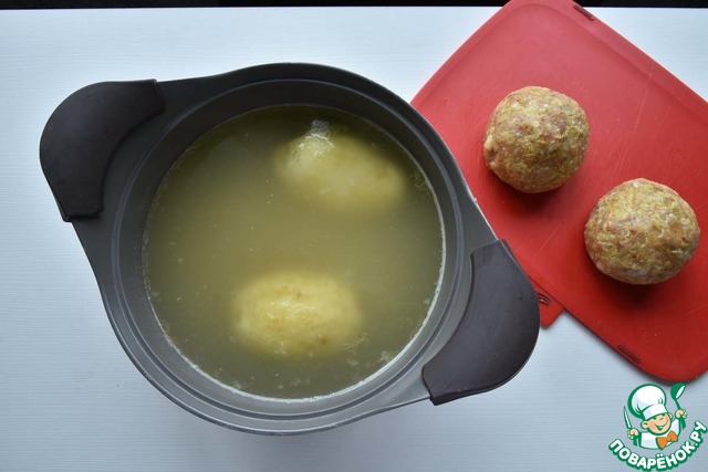 Через 15-20 минут аккуратно перекладываю в бульон подготовленные фрикадельки.