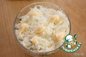Третий слой - тертые на мелкой терке яйца, а точнее, белок.