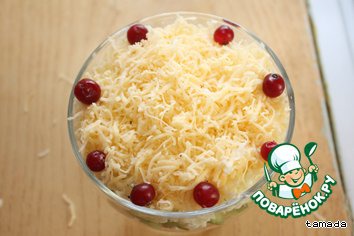 Последний шаг - тертый на мелкой терке желтый сыр (я брала российский, я - патриотка :) ) и украшаем клюквой.