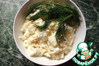 Много лить майонеза тоже не советую, иначе салат "поплывет".