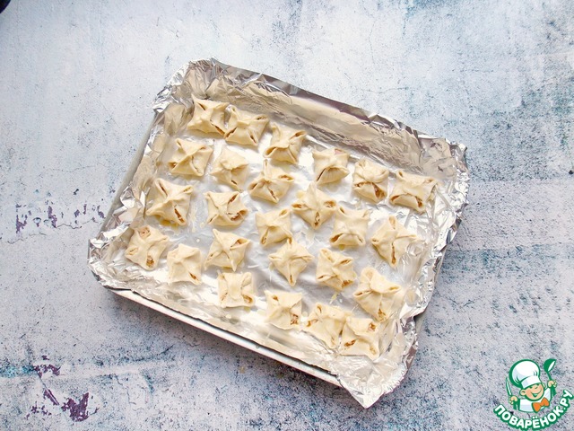 Поставьте противень с финтифлюшками в горячую духовку и выпекайте при температуре 180 градусов до золотистого цвета. Это примерно 15 минут.