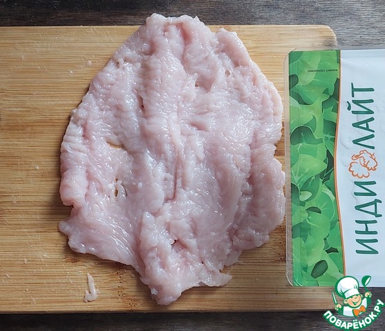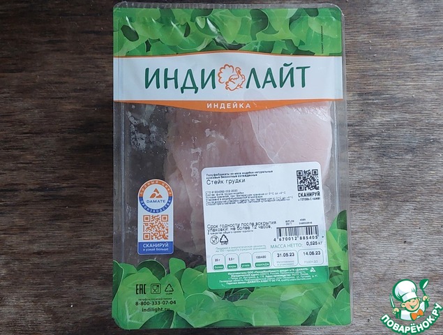 Для приготовления рулетиков я буду использовать стейки индейки ТМ "Индилайт".