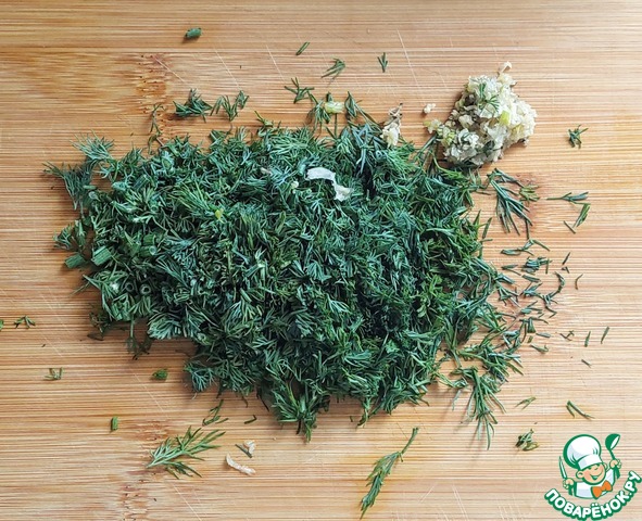 Укроп промыть, мелко нарезать. Чеснок почистить, помыть, натереть на мелкой тёрке.