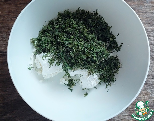 Соеденить брынзу, укроп и чеснок. Хорошо перемешать.