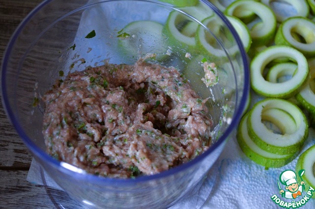 Ингредиенты для «Кабачковые кольца с фаршем»: