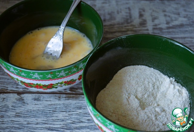 Взбить яйцо с молоком. Отдельно насыпать в блюдце муку.