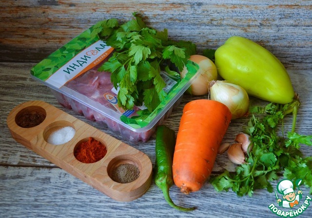- Перец чили (зелёный стручок и красный молотый) — по вкусу