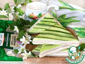 Перед подачей снимите пищевую плёнку, каждый сэндвич разрежьте по диагонали и угощайтесь!