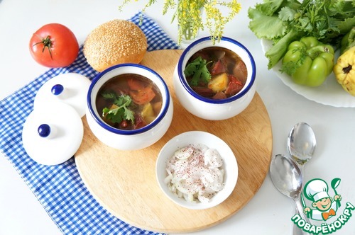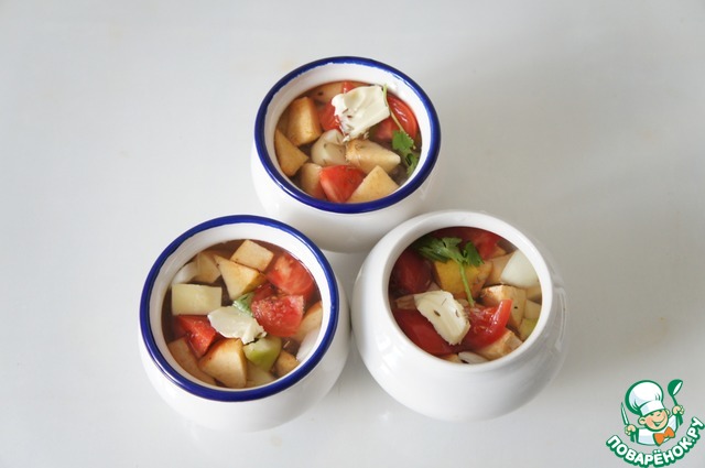 Летний суп в горшочке в стиле куза шурпа. У плиты сейчас стоять не хочется, а блюдо этим удобно: заложил ингредиенты в горшочки, оставил томиться и ушёл на речку. Купаться, загорать, аппетит нагуливать. А после как здорово устроить пикник: вкусить сытного супчика на свежем воздухе. Красота!