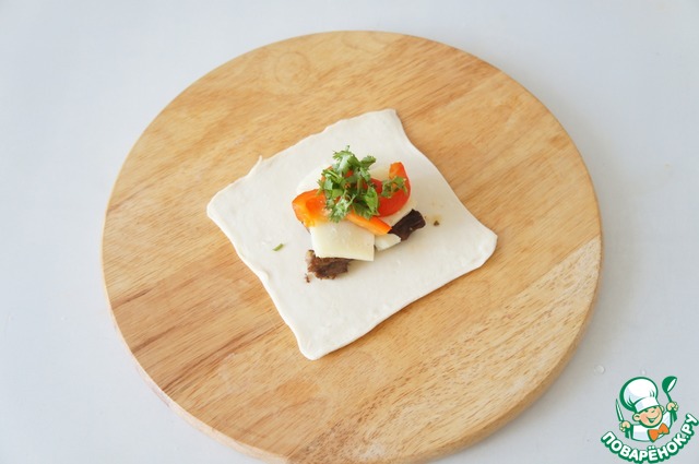 Рецепт «Слойки с бараниной, сыром и перцем»: