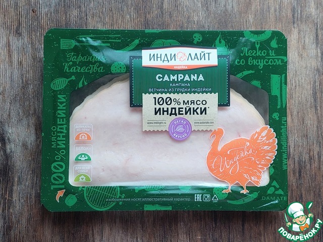 Для приготовления рулета я буду использовать ветчину ТМ "Индилайт".