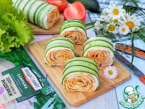 Рецепт «Рулет из лаваша с ветчиной и огурцом»:
