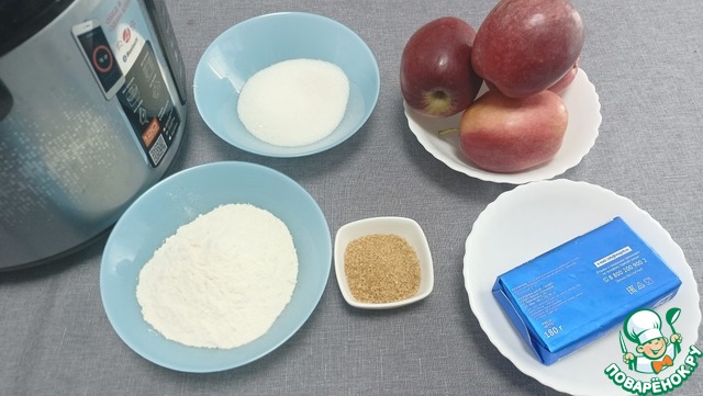 В одной емкости смешиваем яблоки и 70гр сахар. В другой по 30гр сахара и коричневого сахара, плюс муку и масло (тщательно мешаем).