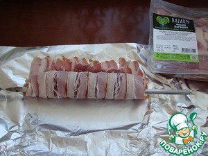 На двойной лист фольги уложите бекон, примерно по 6-7 ломтиков.