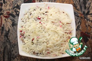 Итак, первый слой - вареная картошка, натертая на крупной терке. Полить майонезом -