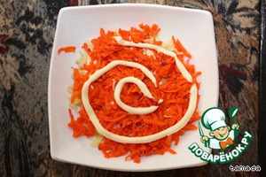 Предпоследний шаг - свеколка, которую хорошенько промазываем майонезом