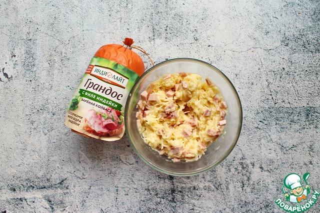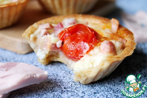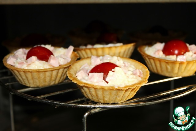 Рецепт «Тарталетки с колбасой и сыром»: