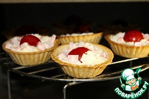 Разложите массу по тарталеткам и в серединку уложите по одному черри.