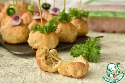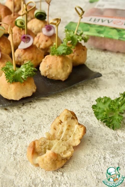 Эта простая в приготовлении закуска идеально подойдет для перекуса на природе. Она сытная, ее удобно есть руками. Небольшие шарики на пару укусов можно подать с любым соусом.