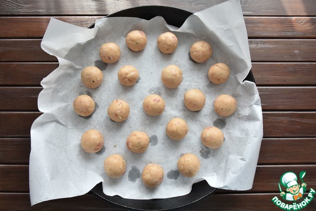 Из подготовленного теста сформировать шарики размером с грецкий орех, весом граммов по 20.