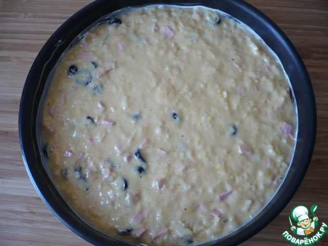 Вылейте смесь в форму для запекания (d-24 см) и выпекайте около 45 минут при температуре 180 градусов.