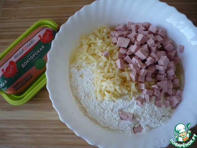 Для приготовления закусочного пирога я использовала колбасу докторскую из индейки ТМ "Индилайт".