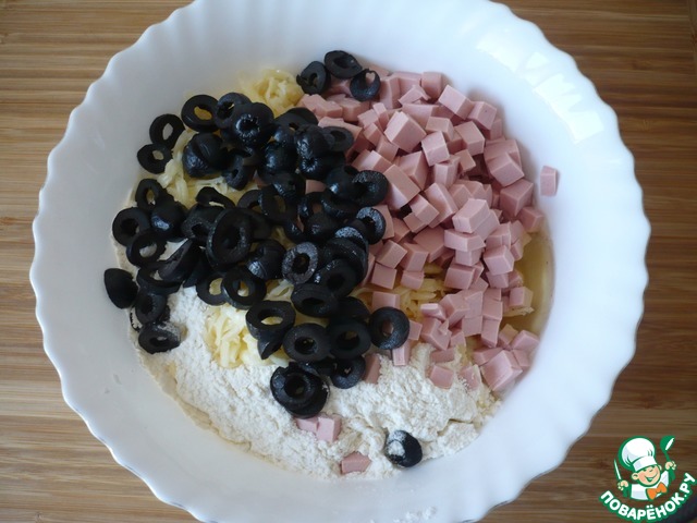Ингредиенты для «Пирог закусочный с колбасой "Радужная рыба"»: