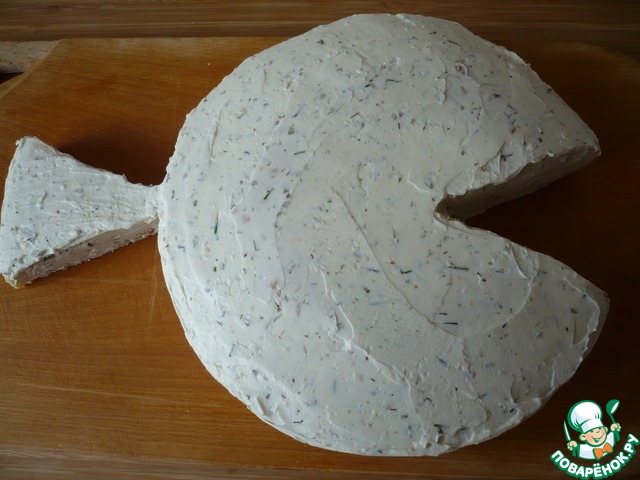 Смажьте "рыбу" творожным сыром с прованскими травами.
