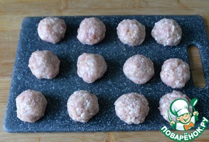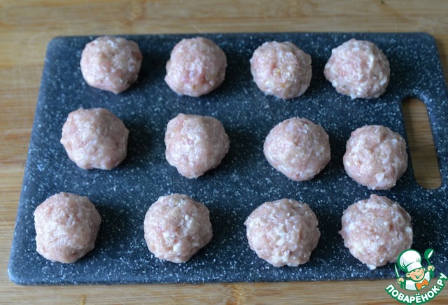 Из фарша мокрыми руками делаем фрикадельки. 12 штук.