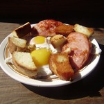 При желании можно делать все в одной сковороде или хлеб жарить вместе с яйцами, а колбасу отдельно