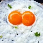 Когда с одной стороны колбаса будет готова, то переворачиваем ее и сверху разбиваем яйца, солим и жарим до готовности.