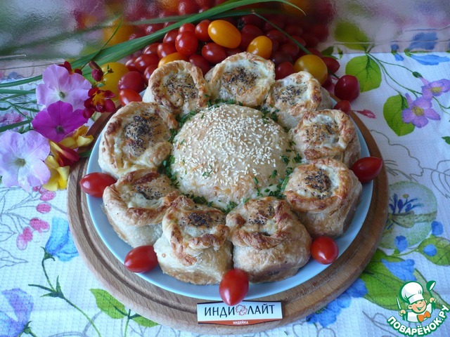 Отрывной пирог из слоеного теста с начинкой из фарша индейки ТМ "Индилайт" готовится просто и без особых усилий. Удобство такого пирога в том, что его не нужно нарезать, каждый может оторвать себе полноценный кусочек. Пирог получается вкусным и очень аппетитным.