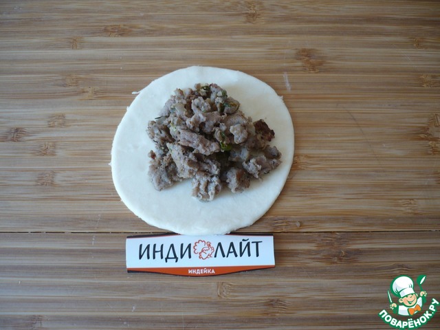 Для приготовления начинки для отрывного пирога я использовала фарш из голени индейки ТМ "Индилайт".