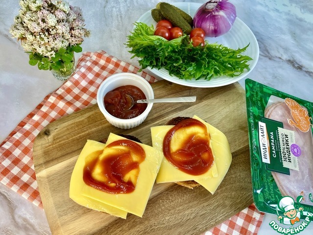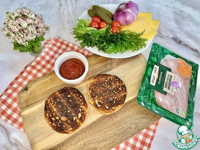 Рецепт «Кампана-бургер с ветчиной из индейки»: