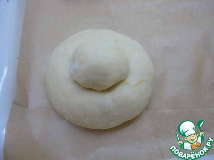 Большие шарики выложите на противень и большим пальцем в муке продавите центр до дна.