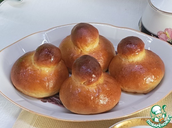 Такие булочки (Siciliani col tuppo)– часть типичного завтрака на Сицилии. Можно их формовать и без верхушек и использовать для приготовления бургеров и сэндвичей (если не добавлять цитрусовую цедру и уменьшить количество сахара). Они идеальны для чая и кофе, если подать их с маслом или джемом, или такими, как есть. В Италии их часто подают начиненными мороженым, что превращает их в прекрасный летний десерт. И, если вдруг вы не съели их в течение нескольких дней, они прекрасно подойдут для приготовления пудинга.