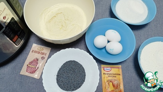Продолжаем готовить тесто: добавляем муку, разрыхлитель и ванилин — до однородного состояния. Взбиваем все это миксером 1-2 минут. После чего уже ложкой вмешиваем в тесто мак.