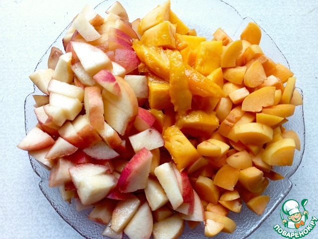 Добавляем нарезанные фрукты, перемешиваем.