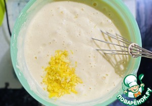 Добавить муку с разрыхлителем и цедру лимона, размешать венчиком
