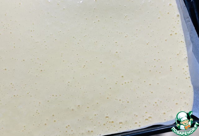 Форму 42х32 застелить пекарской бумагой, вылить тесто, поставить в духовку на 180" 25 минут. СЛЕДИТЕ за своей техникой!!