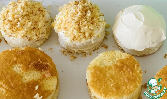 Заготовки промазать кремом и посыпать крошкой