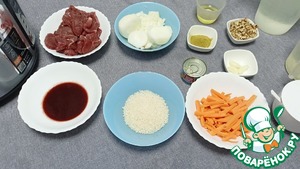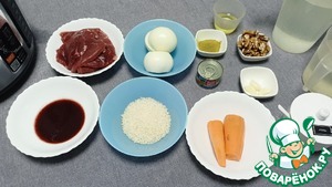 Отправляем в чашу воду и говядину (для аромата можно отправить и лишнюю луковицу) - Режим "Тушение" (t-110C) 50 минут.