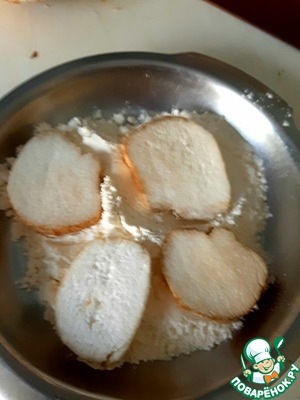 Наши кругляши обваливаем в муке, опускаем в кляр и на сковороду. С одной стороны 1-2 минуты на большом огне, переворачиваем и на среднем огне доводим до румяной корочки (5-6 мин). Если сковорода чугунная, как у меня, то 1 минуту, переворачиваем и еще 3-4 минуты.